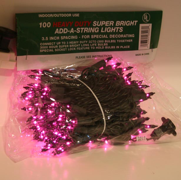 |  |  | Green Wire w/ Pink Lights - 100-Pink Lights, 3.5" Spacing, 29'